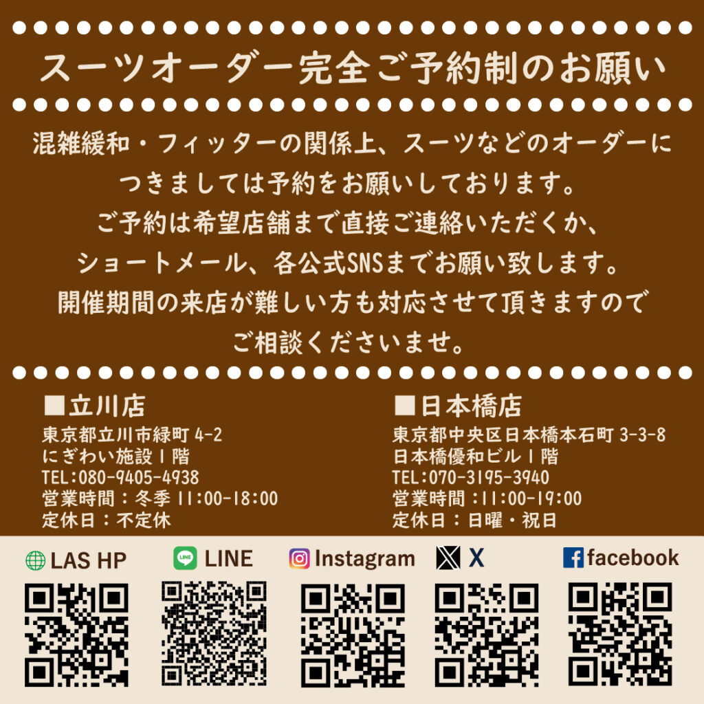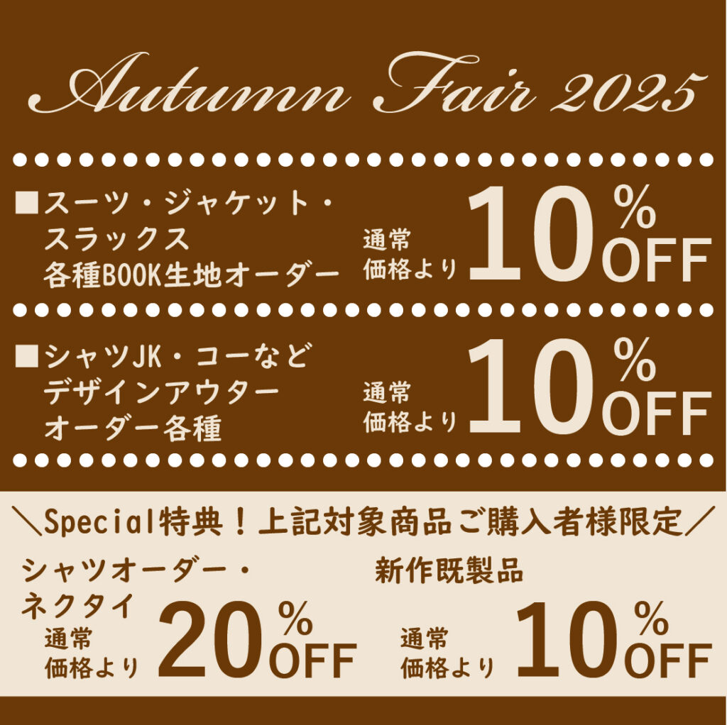 LASでは今年もスーツやアウターがお得にオーダー出来るオータムフェアを