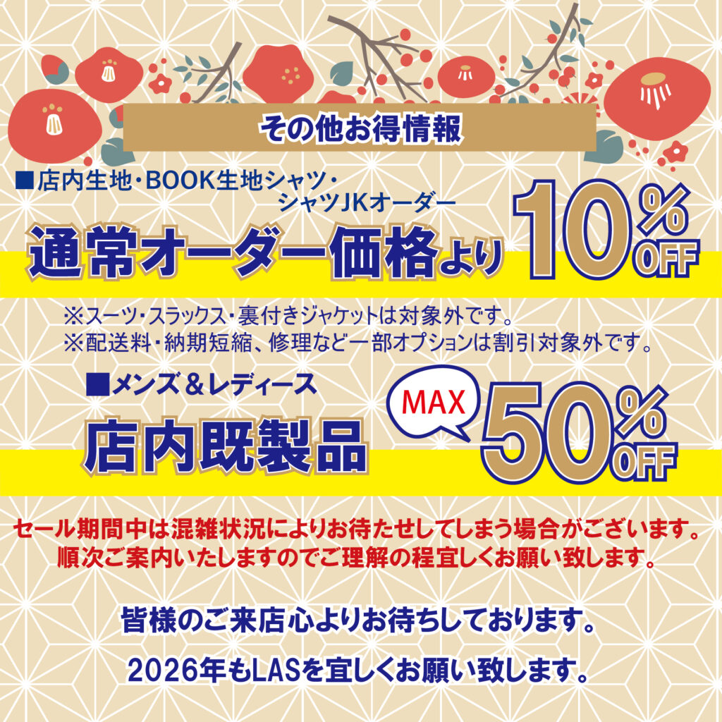 LAS立川店は6日(火)から、日本橋店では5日(月)より新春セールを開催いたします!